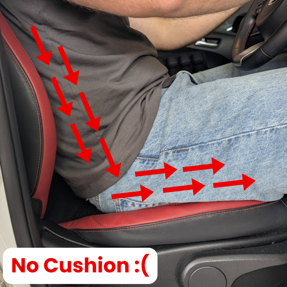 The image on the right reveals the dangerous red 'hot spots' that cause tailbone pain and numbness. On the left, our cushion eliminates them entirely, proving how it delivers a feeling of weightless floatation and immediate relief.